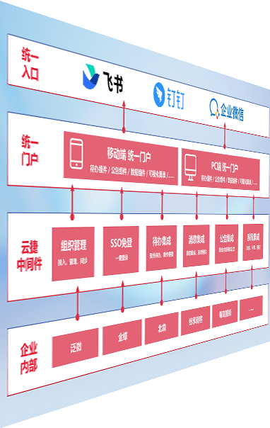 对协作平台提供支持服务,,支持企业应用与协作平台对接,,,包含组织同步、、、、消息集成、、、、待办集成等。。。支持目前主流的协作平台:钉钉、、、、企微和飞书。。。。